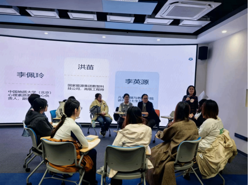 以情境的方式打开心扉,聚焦于成为你自己。三位来自不同领域的专家分别从企业身份、心理健康、读书滋养等多角度结合《与女科学家面对面:成为你自己》《我们仨》两本推荐书目进行主旨分享。国家能源集团高级工程师洪苗,从一名科技人员的职场视角讲述了人生“配比”的规划策略;中国地质大学(北京)心理素质教育中心负责人李佩玲副教授,从心理调适角度解析成长中的情绪与认知管理;我校儿童发展与教育学院青年教师、硕士生导师李英源,从教育和自身阅读实践中启发学生思考自我成长路径。专家们的精彩分享赢得了阵阵掌声。同学们和专家就人生规划、心理调适、学业发展等问题面对面交流,积极互动、真诚碰撞、敞开心扉,在书中找到答案、在情境中触动内心、在一问一答中悦动成长。