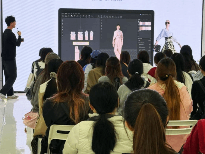 在伊芙丽、片断集、麦檬、诗凡黎等具有代表性的品牌企业调研中,学生系统梳理了从产品策划、设计研发、生产制造到终端运营的全流程逻辑。品牌设计师与市场负责人围绕现场提问展开的分享,引导学生将传统文化内涵、生态环保理念与社会公益意识融入设计思维。在四季青服装面料市场,学生通过收集当季流行面料样本、观察色彩与材质走向、结合终端消费行为进行交叉分析,建立起从原料端到用户端的立体认知体系,培养以数据驱动设计决策的市场意识与职业能力。